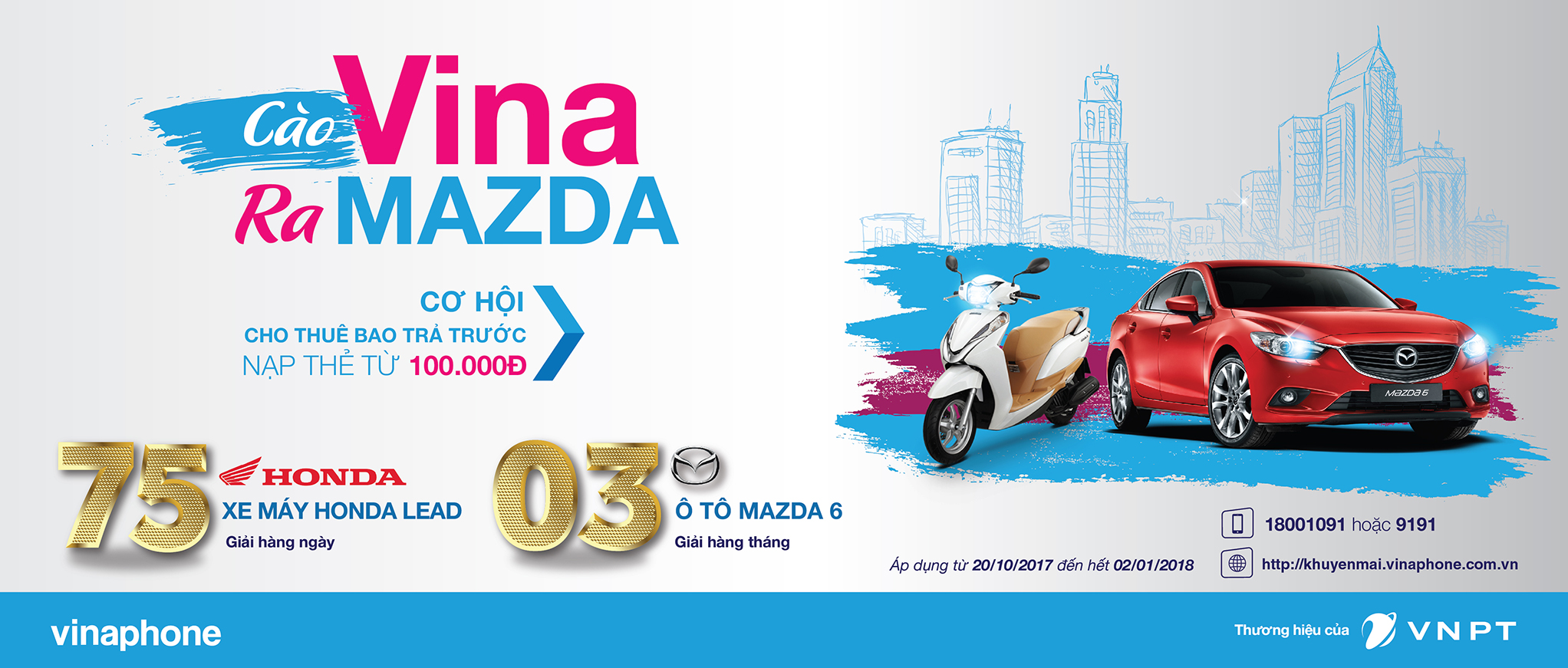 Đừng bỏ lỡ ngày vàng cuối cùng năm 2017, tặng 50% giá trị thẻ nạp VinaPhone, cơ hội trúng Mazda