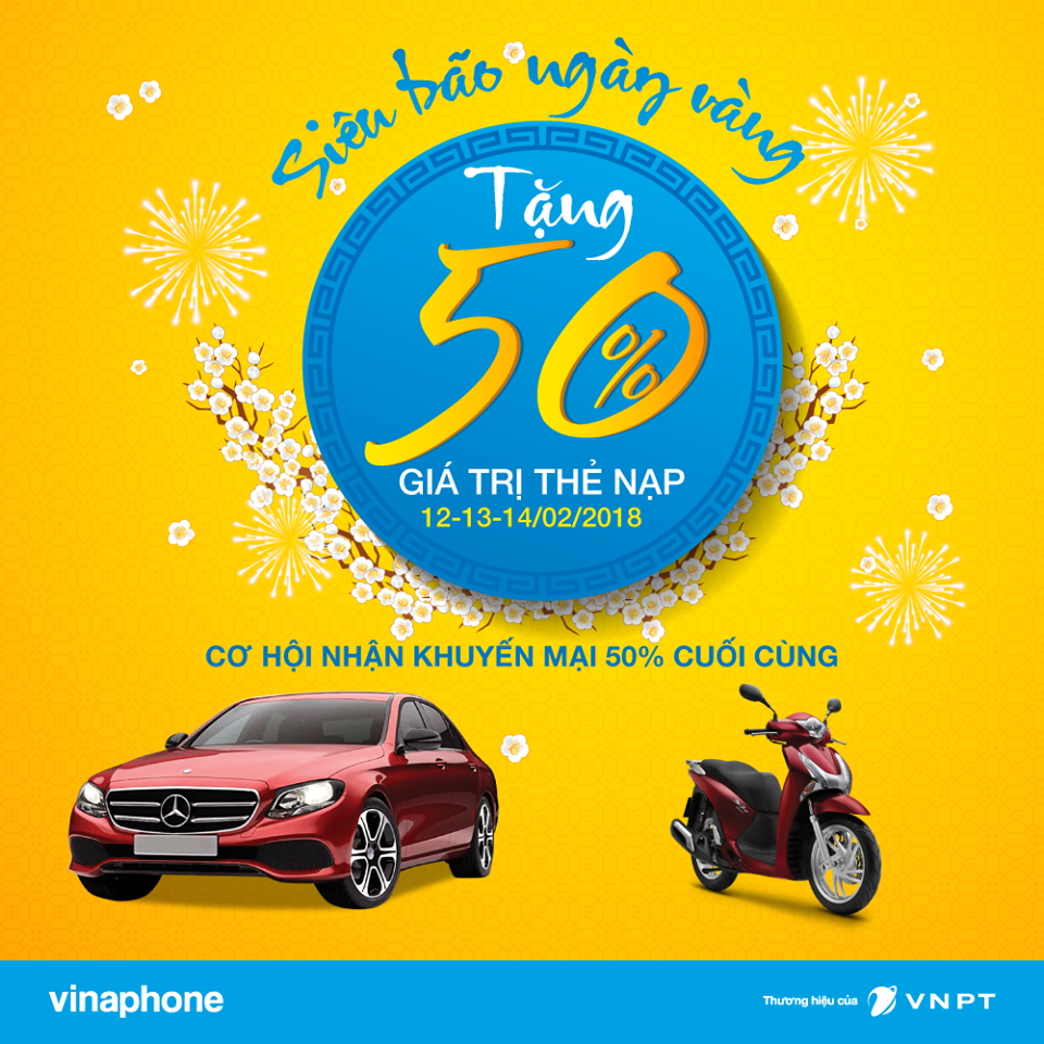 Cơ hội nhận 50% giá trị thẻ nạp cuối cùng, vì đến tháng 3/2018 trở đi các nhà mạng chỉ được phép khuyến mại tối đa là 30%