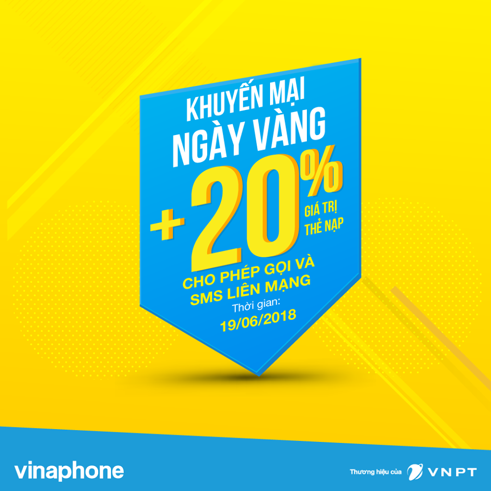 Vinaphone khuyến mại 20% giá trị thẻ nạp ngày vàng 19/06/2018